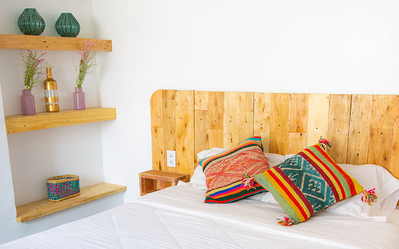 Además, cuenta con TV Cable en la habitación; una excelente cobertura de señal Wi-Fi dentro de la habitación y en todo nuestro hotel en Sosa House, un armario de madera reciclada para dejar bien organizadas sus pertenencias y mesas de noche.